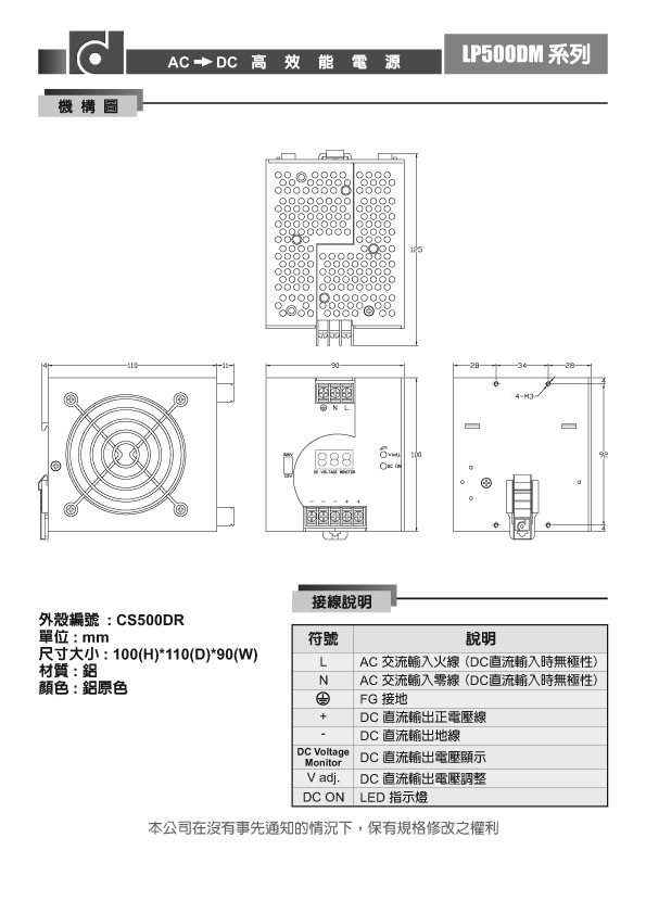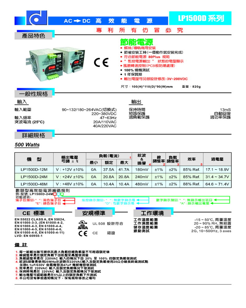 3、输入电压:100/220V AC(切换式电压) ,符合全球使用标准;
