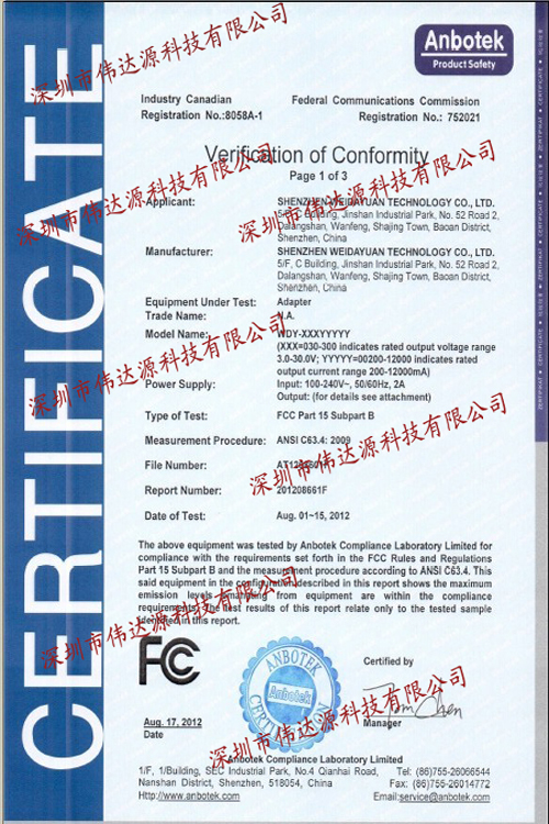 FCC认证证书