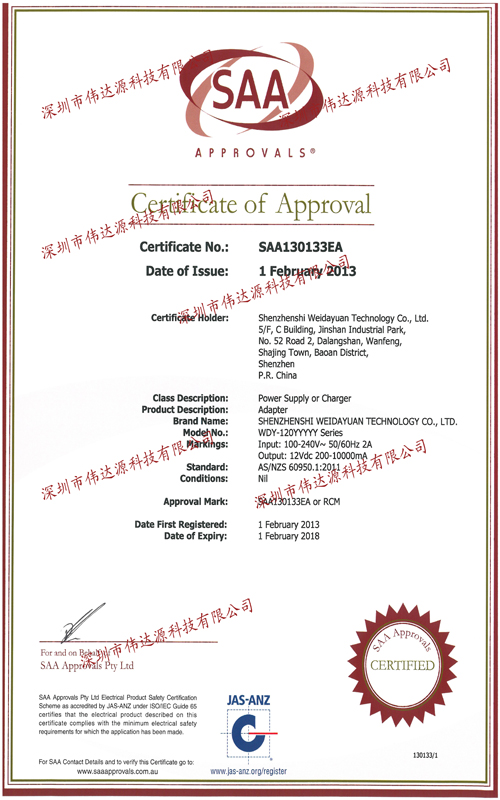SAA认证证书
